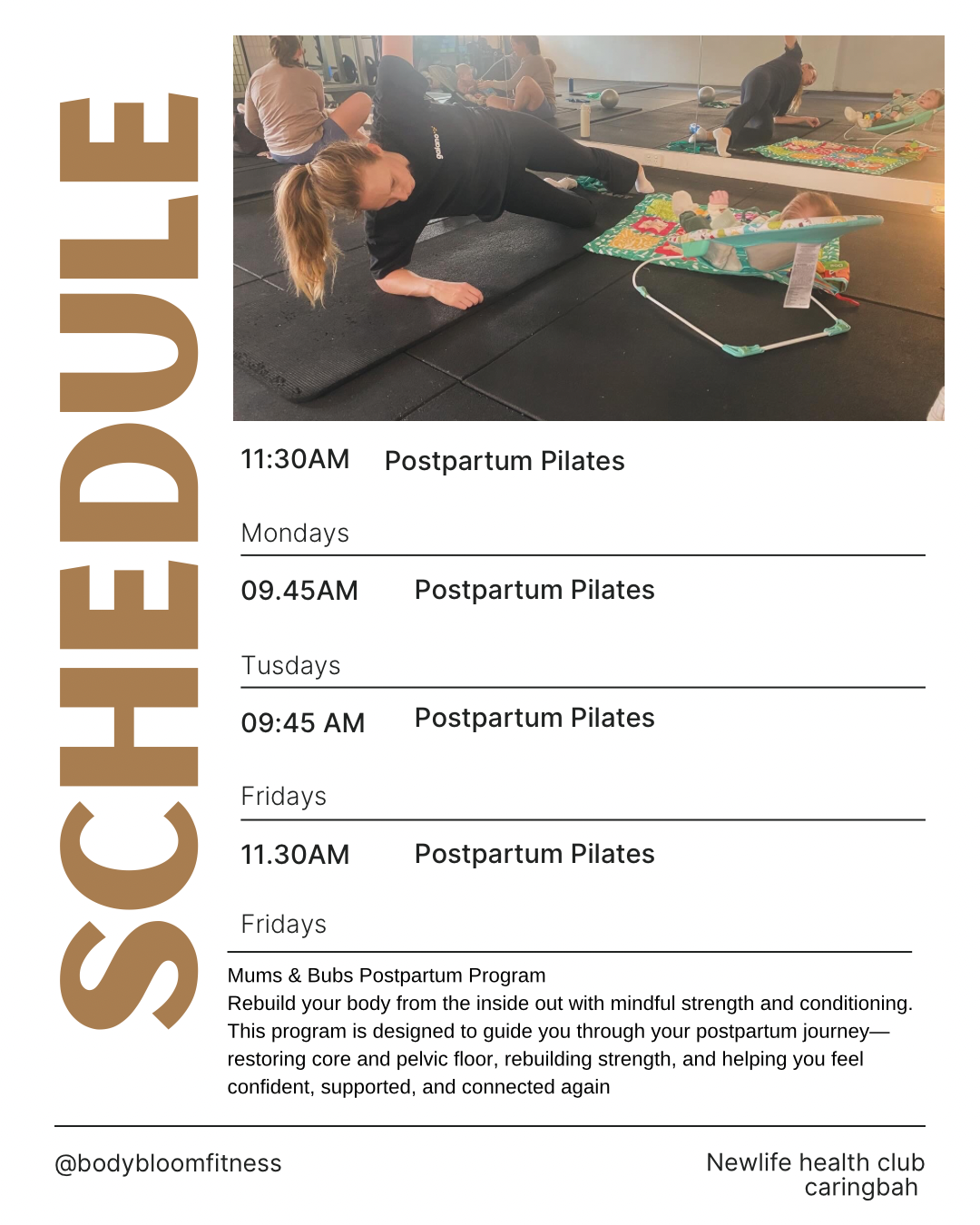 Postpartum is where Steph gathers with mothers in her nurturing Mums & Bubs Pilates program — helping women reconnect with their bodies, rebuild strength, and restore confidence through mindful, restorative movement.